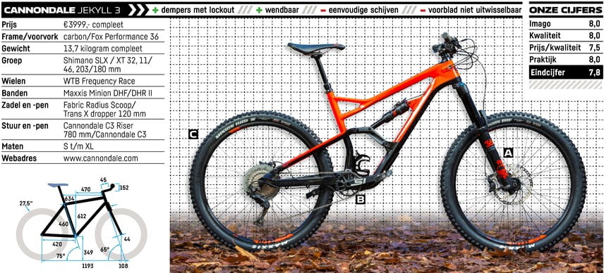 Met de opkomst van enduro in onze buurlanden en de steeds populairder wordende mini-downhillcup in Nederland krijgen fietsen met meer veerweg in ons kleine landje langzaam steeds meer bestaansrecht. De Cannondale staat dan ook hoog op onze verlanglijst. Wat een gave fiets is dit!Kort, korter, kortst. De chainstays van de Jekyll zijn superkort