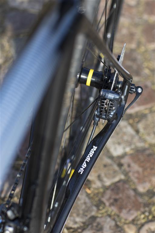 Wij konden even spelen met de Paralane met Ultegra. Deze is er in maat 48 tot en met 61 en kost € 2999,-. Ultegra 8020 11-speed, 50/34 voor en 11/34 achter, 160 mm schijven, R.A.T.-thru-axle, Mavic Aksium wielen en 28 mm Grand Prix 4 Season banden. Het frame weegt 1100 gram, de voorvork 450 gram, 8,30 kilo compleet. De torsiestijfheid is 122 nm.