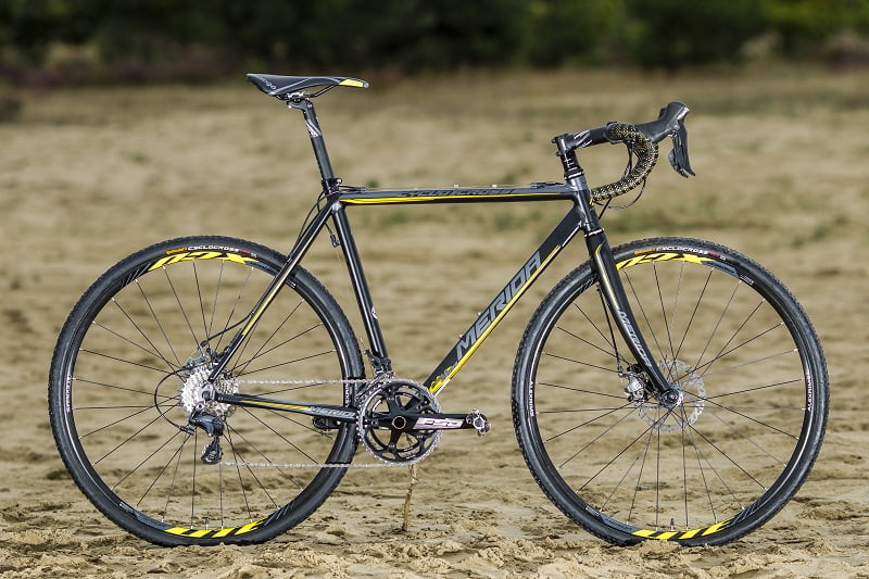 De afmontage bestaat uit 11-speed Shimano Ultegra in combinatie met een FSA Energy Cross 46/36 crankstel en 11-28 achter. Het remmen gebeurt met de Hayes CX Expert 160 mm schijf voor en Hayes CX Expert 140 mm schijf achter. Extra remhendels op het stuur. Wielen: opgebouwd rond Shimano naven en 28 gaats Merida XCD Lite velgen. Verder Continental Cyclocross Race 35 mm vouwbanden en Merida delen en Prologo Kappa Evo zadel. 9,70 kilo voor een maat 55. Er zijn vijf maten: van 48 tot en met 61 cm. De fiets draaide mee in de test voor FIETS 10. We vroegen onze testers dus ook punten te geven voor remkracht, het schakelen en het rijgedrag. Respectievelijk een 6,5, 8 en 7, 2 scoorde de Merida. Het remmen van de Hayes remmen? Is ‘ruim voldoende’ maar een stuk minder dan de hydraulische remmen. ‘maar als je vooral toertochten rijdt is het een stuk beter dan gewone remmetjes’. De nut van de extra remmen aan het stuur zit hem in een extra stukje zekerheid. Het schakelen van de 11-speed Ultegra zit op een hoog niveau ‘alles werkt zoals het hoort’ volgens een van onze testers. Wat valt tegen? Het gewicht van de complete fiets. Die zit tegen de 10 kilo aan en dat is in vergelijking met -met name- carbon fietsen een stuk hoger. En die extra ‘last’ lijkt de Cyclo Cross 5 D ‘wat te remmen. Hij voelt stug aan. En de Merida moet wat op gang komen. Als dat zo is, dan loopt die gewoon lekker door’. Samenvatting: niet super flitsend, wel een uitstekende fiets als je je focust op het maken van toertochten. Een stuk subtieler dan een 29er. Stoerder ook. Net gemaakt frame, alles past. Prima 11-speed Ultegra en FSA crankstel. Remkracht net wat minder als bij de hydraulische SRAM remmen. Wielen ruim in orde, al zijn ze wat zwaar.