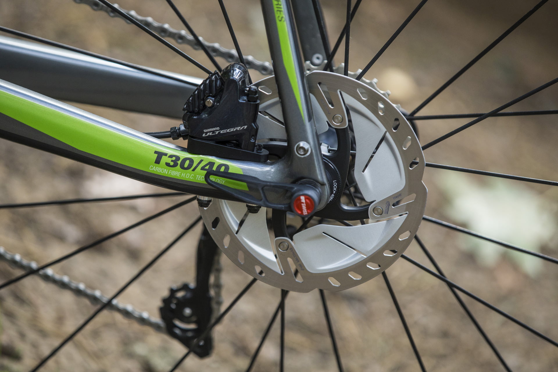 De Cross Ultegra rijdt zoals de fiets er uitziet: oversized, stoer en bijna ‘macho’. Ze hebben de Xeon goed gestyled daar bij Rose. Een los frame (57) weegt 1125 gram, de voorvork 450 gram. De torsiestijfheid bedraagt 129 Nm. 8,30 kilo weegt die zo: heel netjes. Het ‘ding’ wil gewoon gaan en laat zich door weinig stoppen. In lange bochten geeft de Rose geen krimp, de fiets is voelbaar en merkbaar stijf. De G-One’s doen heel veel; ze slokken veel wortels op, ze glijden bijna door het zand en in droge omstandigheden hadden de oversized ‘diamantjes’ voldoende grip. Vijf maten, twee kleuren: groen/grijs en rood/grijs. Dit exemplaar kost 2541 euro, maar is er al vanaf 2135 euro met 105.