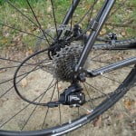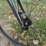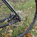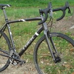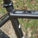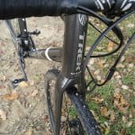 De afmontage van de 7 Disc bestaat uit 10-speed SRAM Rival in combinatie met een FSA 46/36 crankstel en 11-28 achter. Het remmen gebeurt met de Avid SB 700 ‘HRD’met zowel voor als achter 160 mm schijven. Wielen: Bontrager Disc Alloy 24 en 28 gaats met Bontrager CX 3 32 mm banden en Bontrager delen. En een heel breed stuur op deze fiets. Even wat cijfers: wielbasis van 102,8 centimeter, zithoek van 73,3 graad en een balhoofdhoek van 72,3 graad, naloop van 66 en een bovenbuis van 57 centimeter. De balhoofdbuis meet bijna 18 centimeter.