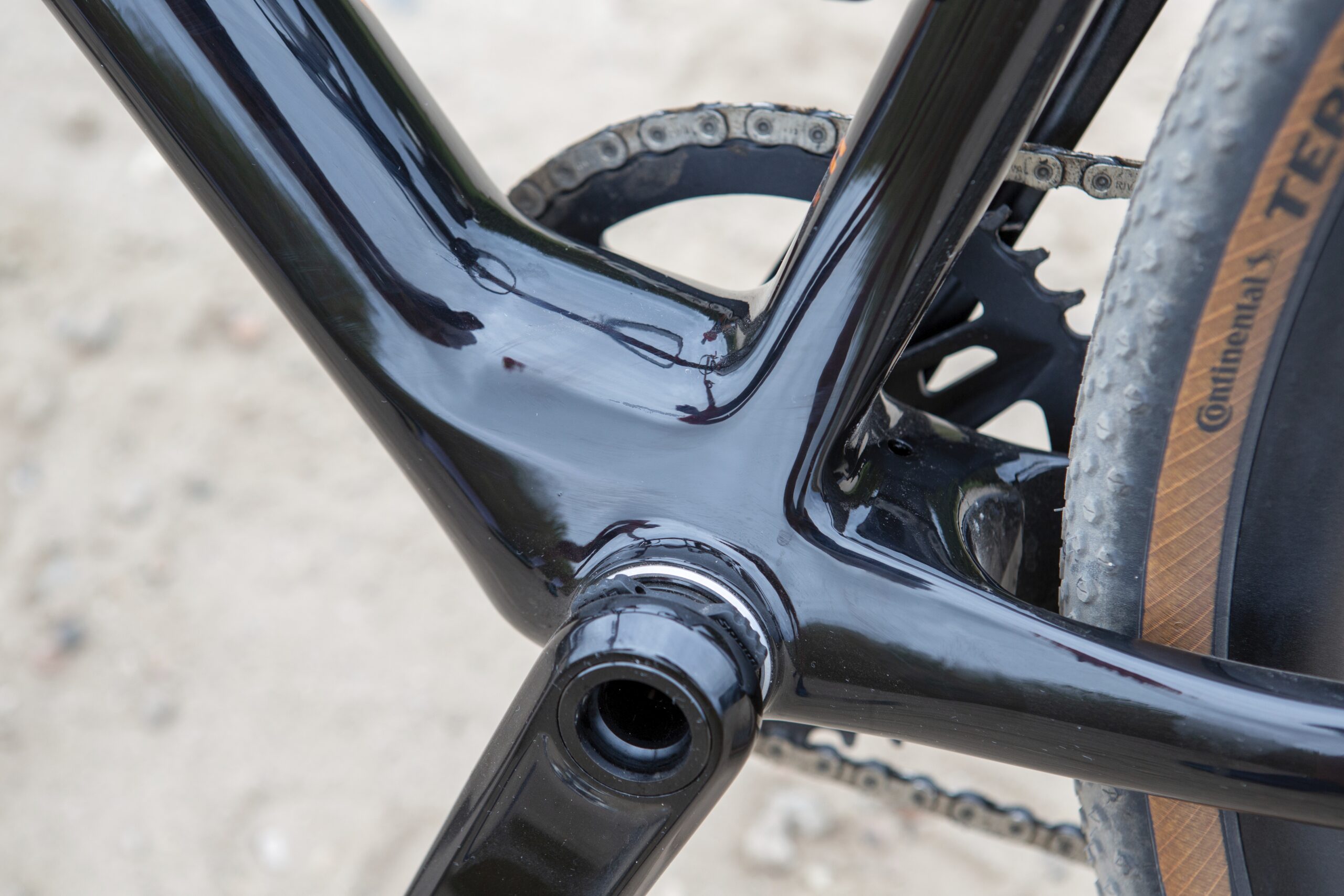 De Oostenrijkse framebouwer heeft gekozen voor een minimumaantal bevestigingspunten. Je zult je bikepackingtassen dus met riemen en gespen moeten monteren. De Terra Speed-bandjes van Continental in 40 millimeter passen goed bij de X-Strada. Ze zijn soepel, snel en bieden voldoende grip tijdens snelle gravelritjes. Want daarin voelt de KTM zich opperbest.