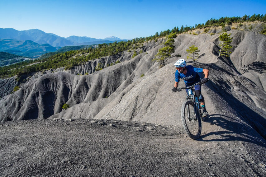 Een ander nadeel is de kettinggeleider: de ketting heeft nogal de neiging om een deurtje verder te kijken waardoor hij er snel vanaf valt. Frustrerend, want dat betekent dat we vaak moeten stoppen. Ondanks een strakkere afstelling krijgen we dit probleem niet opgelost. Tijdens een volgende run kiezen we voor de flow en jumps. Snelheid en springen dus, iets waar deze fiets niet direct in uitblinkt. In de mooie verharde bochten krijg ik de fiets moeilijk op gang, wat naar mijn idee komt door het langer worden van de wielbasis wanneer in de bochten de vering wordt ingedrukt. Hierdoor wringt de boel, wat voor wrijving en afremming zorgt.