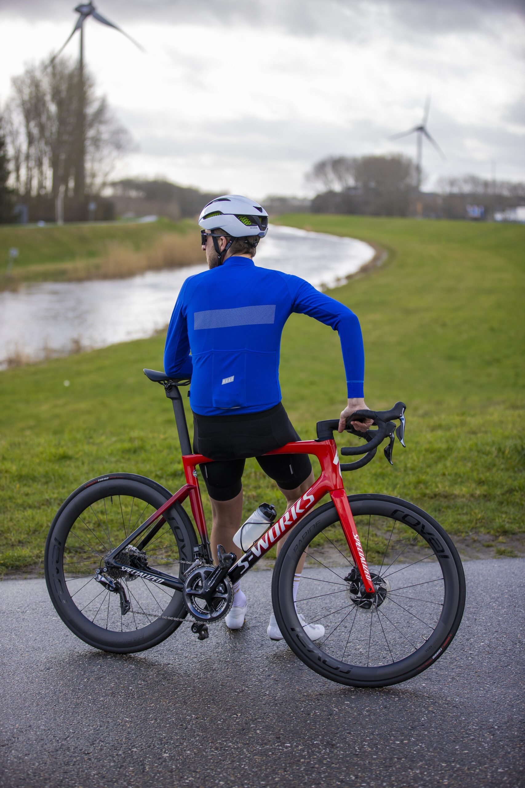Wat daarbij helpt, is je positie op de fiets. Door de sloping-geometrie en de vrij gemiddelde stack- en reachwaardes zit je in vergelijking met diehard aerobikes vrij ontspannen op de SL7. Ook onderin de beugel belast je je rugspieren niet overmatig veel, waardoor je gerust een aantal uren kunt vechten tegen de wind zonder daarna gebroken af te stappen. Of ik nog wat te klagen heb? Hooguit over de aerobeleving. Het zal misschien persoonlijk zijn, maar als ik deze fiets door de wind jaag, mis ik geluiden in het frame en de wielen. Het gezoef, geknetter, geklapper en gejoel dat je normaal gesproken hoort als je een aerobike op zijn staart trapt. Ach, als dat het enige is…