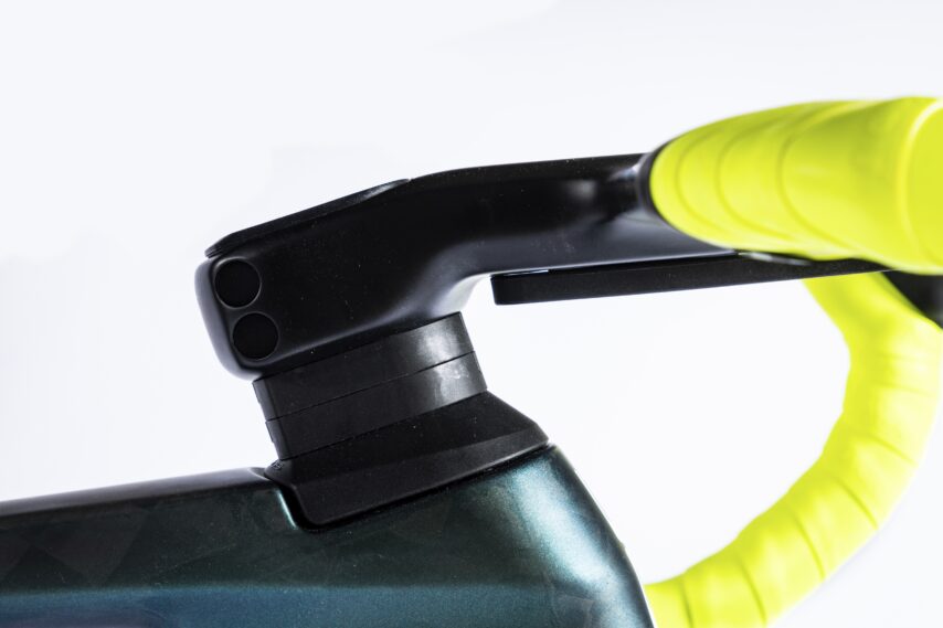 De Litening Aero doet zijn naam eer aan, deze hele fiets schreeuwt aero, snel, gáán! Mijn testexemplaar is uitgevoerd in groen met de van Cube bekende fluorgele accenten (de officiële naam van deze kleurstelling: goblin ‘n’ yellow). De groene metallic lak verandert ook nog eens van kleur, afhankelijk van de lichtinval, en wordt dan paarsachtig. Het is al met al een gewaagde combinatie, maar wat mij betreft wel een heel geslaagde.
