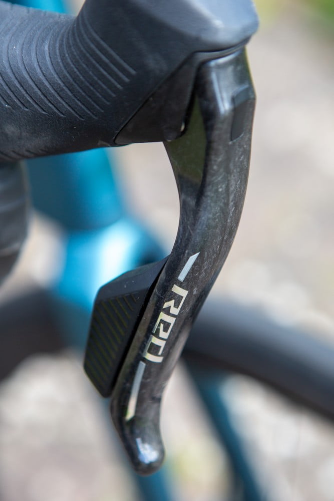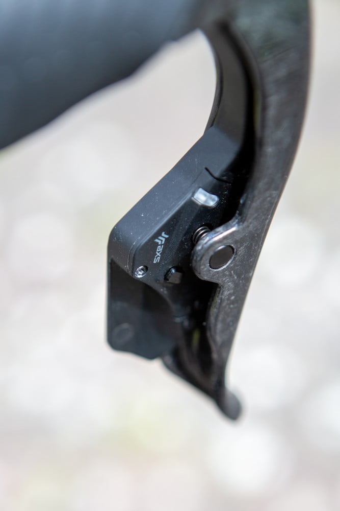 De remgrepen kun je ook nog eens op twee manieren bijstellen. Vooraan zit een klein luikje, erachter vind je een inbusboutje van 2,5 millimeter waarmee je de reach van de remgreep kunt aanpassen. Zo is de nieuwe RED-groep voor grote en kleine handen in te stellen. Als je het rubber van de greep opzij duwt, komt er nog een boutje tevoorschijn. Daarmee wijzig je het aangrijppunt van de remmen. Ook fijn, om daar je persoonlijke voorkeur voor te kunnen gebruiken.