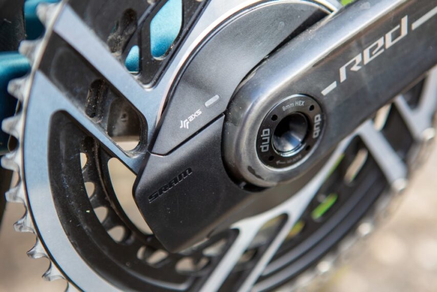 Alsof al die opties niet genoeg zijn, kun je ook nog kiezen of je wel of geen powermeter van Quarq wilt. Deze heeft een nauwkeurigheidsmarge van ongeveer 1,5 procent. SRAM kiest ervoor die meter op het voorblad te monteren. Nadeel daarvan is dat je iedere keer dat de tanden van je voorblad versleten zijn, ook een nieuwe powermeter moet kopen. Daar hebben ze wel een inruilprogramma voor, waarbij je voor de helft van het geld een nieuwe kunt aanschaffen.