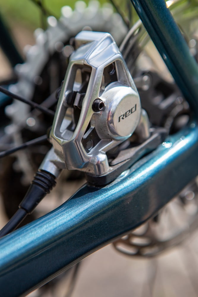 Over remmen gesproken, de calipers zijn ook onder handen genomen. Deze zijn lichter en stijver en de zuigers staan iets meer naar de buitenkant van de remschijven. Dat moet een betere drukverdeling opleveren. Hiermee was het ook mogelijk om wat meer ruimte tussen de remblokken en remschijven te creëren. Dit is inderdaad een verbetering in vergelijking met de oude RED-groep op mijn eigen fiets. Het maakt minder geluid, en vooral als het nat is merk je dat opspattend gruis minder snel tussen blokjes en schijf blijft steken.