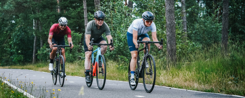 Comfort? Dat biedt deze racer ook, meer dan je in eerste instantie wellicht zou denken. Een ver uitstekende zadelpen, slanke staande achtervorken, bolle 25-millimeterbandjes (er is ruimte tot 30 millimeter) en de zithouding zorgen voor veel stressvrije kilometers. Klimmen, af en toe knallen, maar ook ‘gewoon fietsen’: alles kan met deze Merida Scultura 4000. Het is een ware allrounder. Waar is Wout? Die is ervandoor op zijn Scultura.