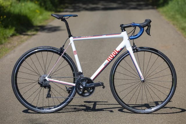Eind 2015 vernieuwd en verkrijgbaar in diverse uitvoeringen vanaf circa 1400 euro met 105: de Xeon RS. Er is ook een CRS – maar dat is carbon. Deze lijkt ook op composiet, totdat je even tegen de bovenbuis aantikt: tsjing! 6061 aluminium, weggewerkte lasnaden, sloping bovenbuis, licht oversized en geovaliseerde framebuizen, pressfit 86 bracket en binnendoor lopende rem- en derailleurkabels en een volledig carbon vork met twee maten lagers, ‘tapered’ balhoofdbuis.