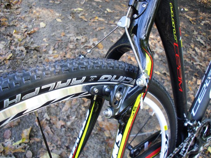 De Cross Carbon doet al jaren zijn werk en het heeft Albert in 2009 aan de wereldtitel geholpen. Dan ‘moet’ het wel goed zijn, zou je denken. Nou , dat klopt ook. Het frame is licht, de voorvork ook, de stabiliteit van de basis staat op een hoog niveau. Het is zeker geen ‘Alan’… Dat wil zeggen: het frame is stijf en scoort net zo hoog als een wegfiets. Gooien en smijten, bochtje om en weer aanzetten. Lekker knallen! Prima. Te stijf? Nee, want het onderstel, zeg maar de wielen en banden zorgen voor de nodige soepelheid en het opvangen van schokken. Nu rijden profs met tubes die extreem goed te ‘tunen’ zijn. Een paar tienden ‘bar’ meer of minder maakt al verschil, evenals het profiel van een band. Bij de burger uitvoering moet je het met gewone banden doen. Geen probleem, want je kunt ervan uitgaan dat je zelf niet ‘ver’ gaat als de profs. We hebben deze Stevens al een paar maal gezien in Antwerpen, Limburg en Vlaanderen bij liefhebbers en junioren. Maar dan wel met een setje ‘tube wielen’.