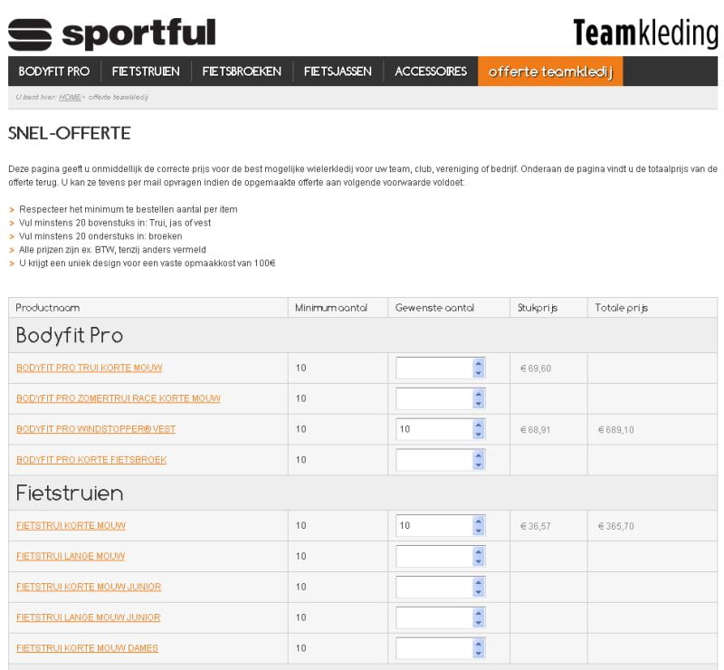 Online offerte-systeem voor teamkleding